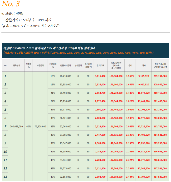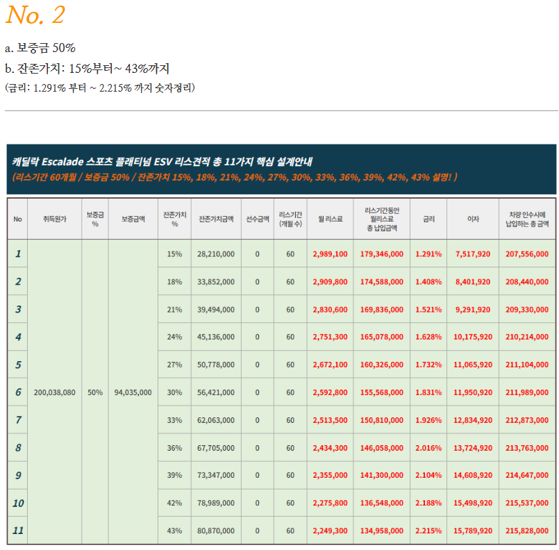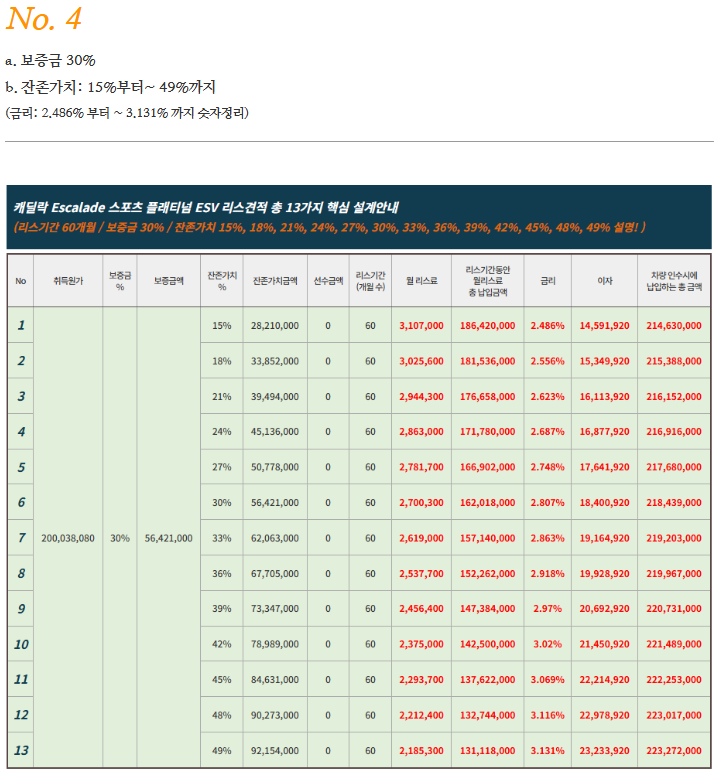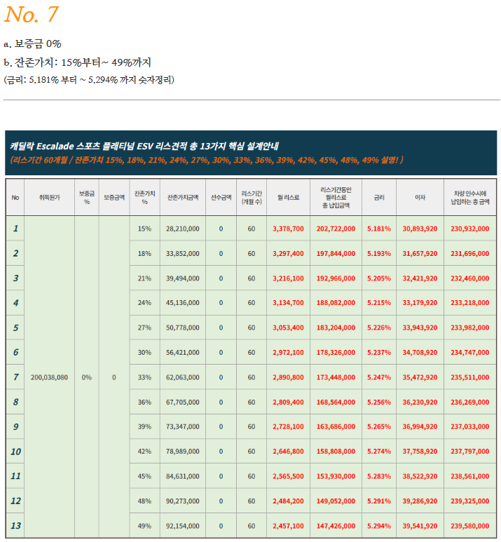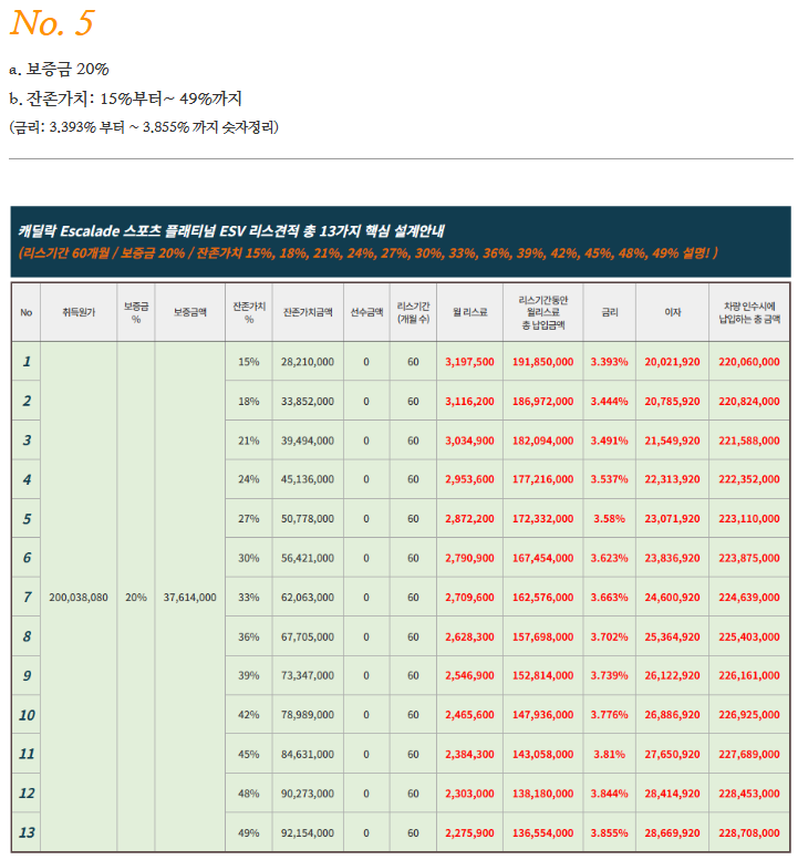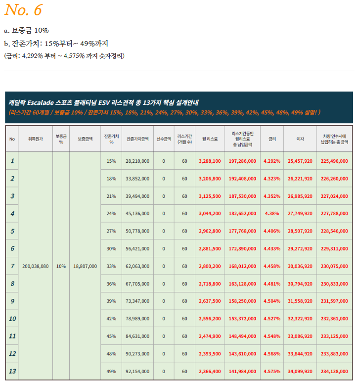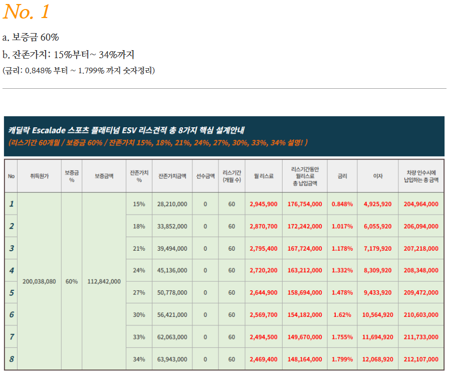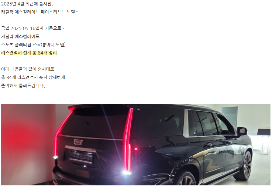 🚙 캐딜락 에스컬레이드 리스 및 장기렌트 요약