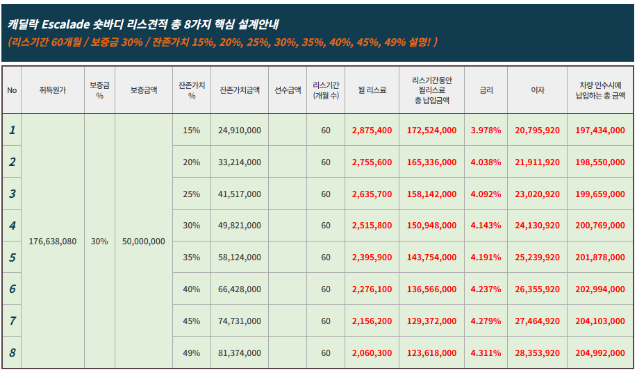 2025 캐딜락 신형 에스컬레이드 숏바디 리스견적서 숫자 상세안내