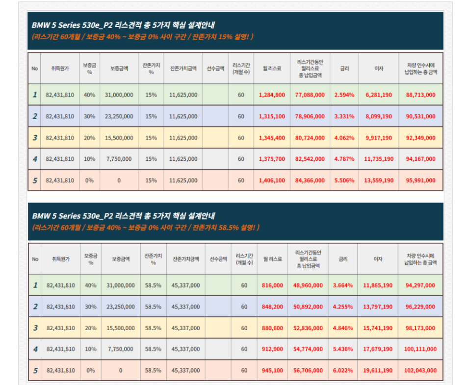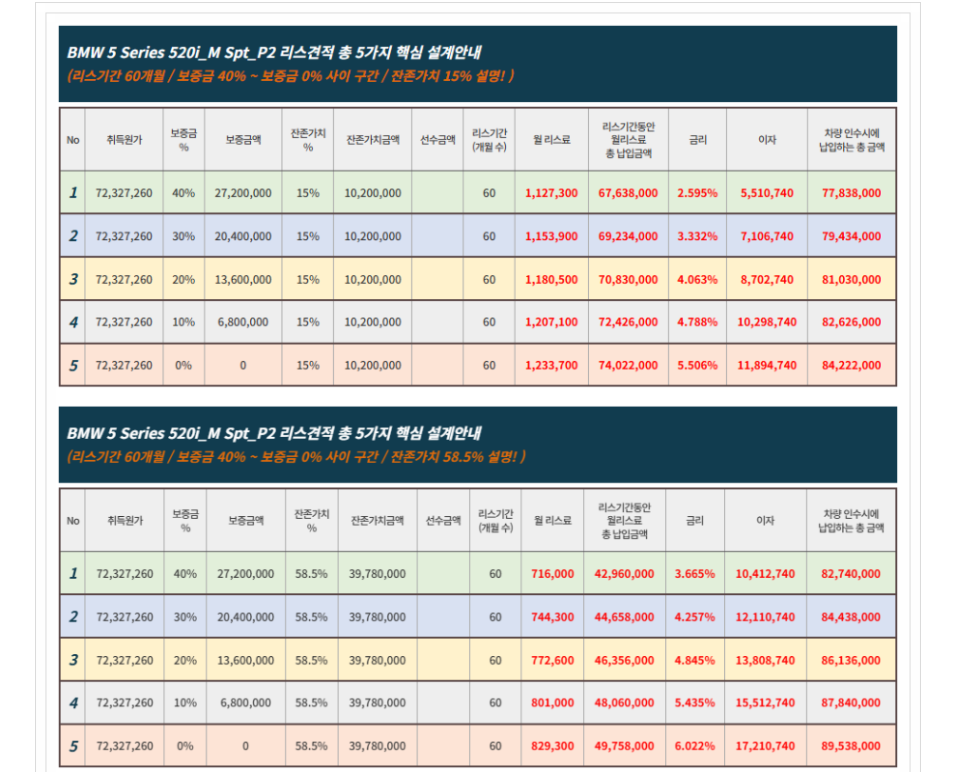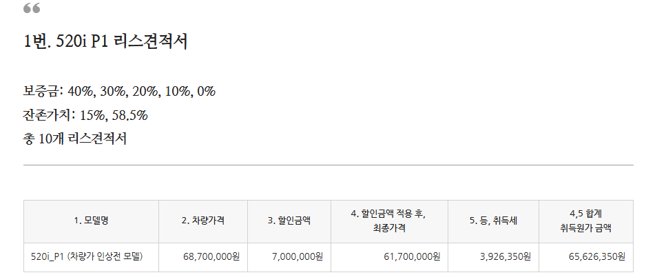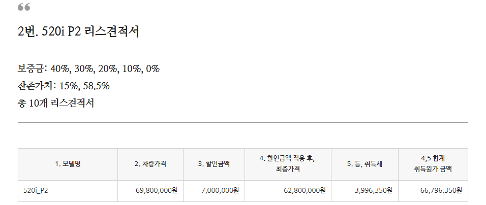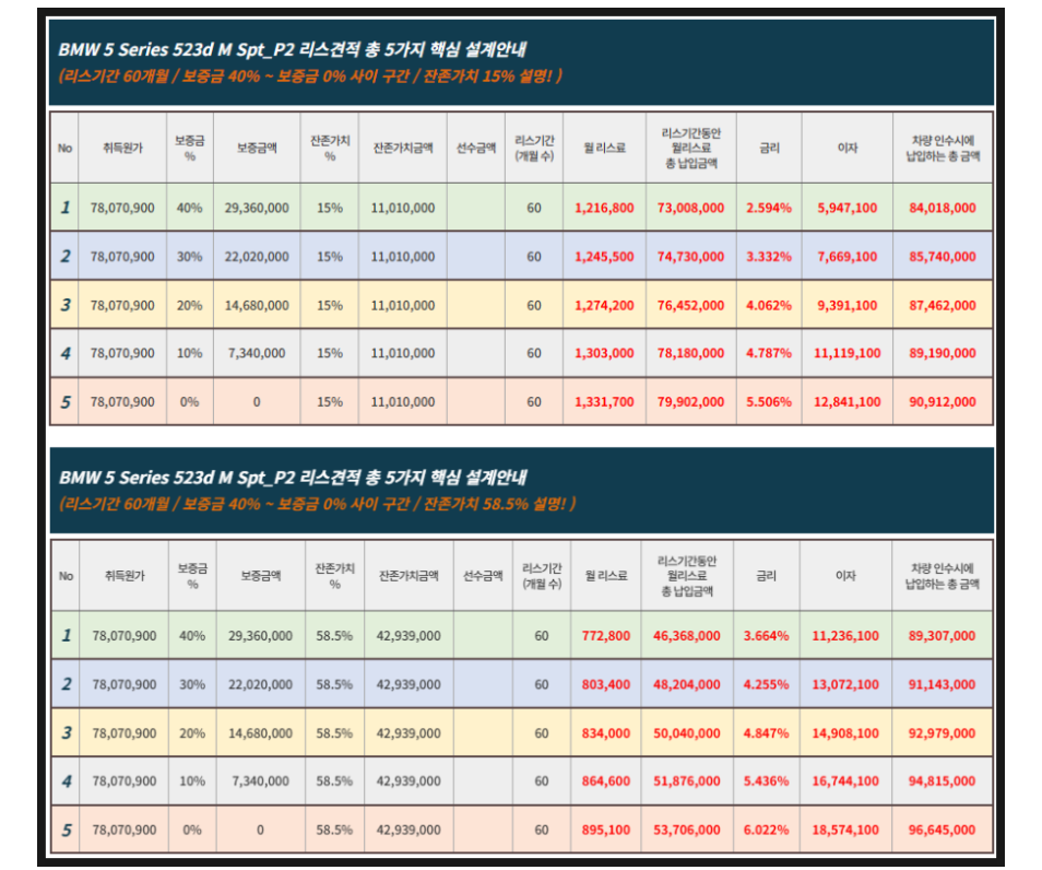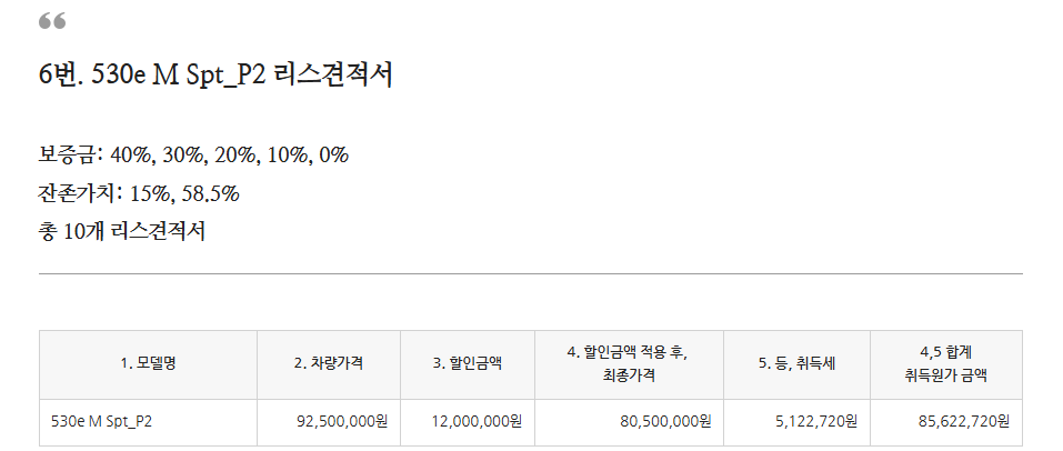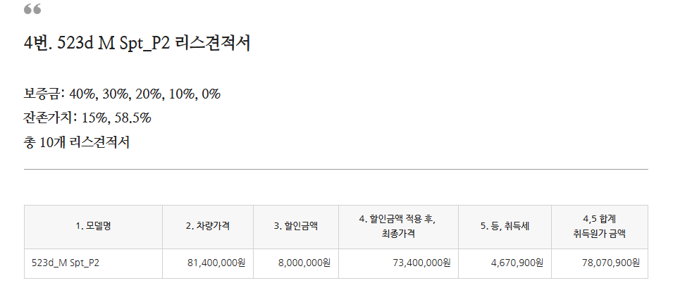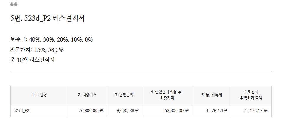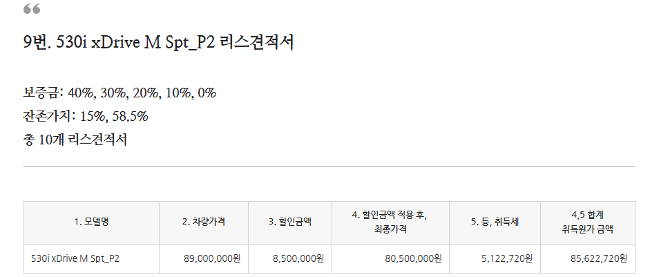 bmw 5시리즈 전체 모델 최대할인 금액및 리스견적성에 대한 자세한 내용 안내해 드려요~